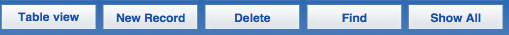 Presents an overview of a set of records. Use table view to gain an overview and navigate between records (by clicking in the dark grey area to the left of the record you wish to select). |