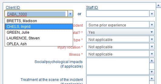 There are places where a staff member or client needs to be selected from a drop-down list.